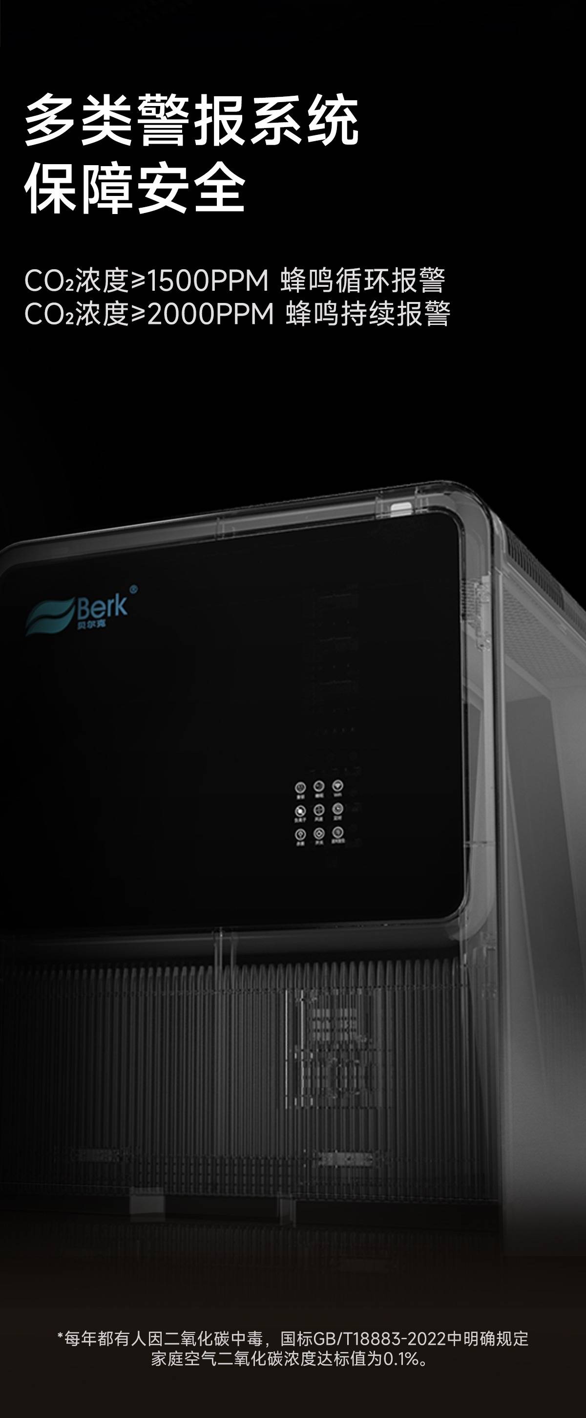 最值得关注的是有二氧化碳的浓度超表预警警示,采用高精度传感器实时监测CO2浓度,超标即报警,,避免虚假警报,确保安全无忧。