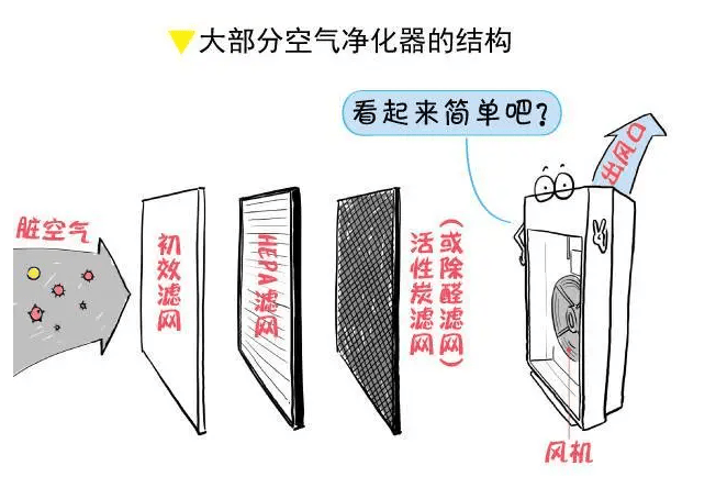 其空气净化器的工作原理并不像有些人想象的那么复杂难懂,而且也确实是能够起到净化空气的作用的。像普通的空气净化器结构很简单,一般是由电系统、风力系统、过滤系统三个部分组成,其中,过滤系统是最为重要的部分。