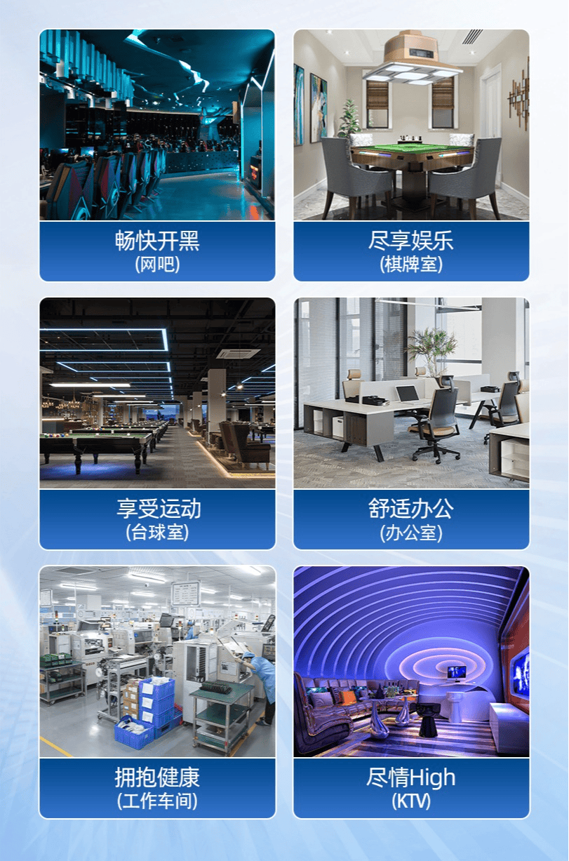 对于在棋牌室、办公室以及工业等大场所的,想要改善室内空气质量,去除二手烟以及尘螨等污染物的中,使用工业空气净化器就很适合,直接一台搞定。