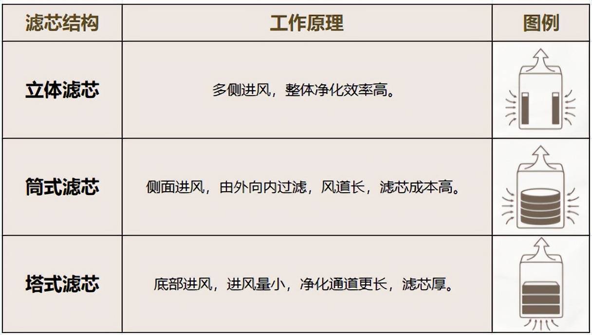 立体滤芯:多侧进风,整体净化效率高。