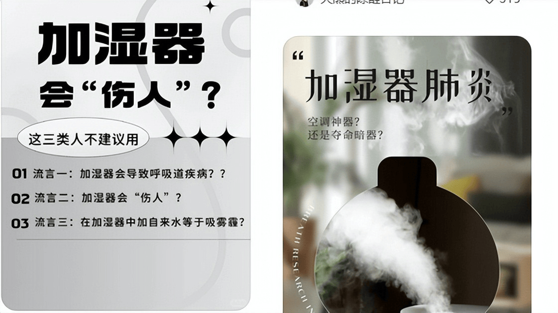 有些朋友可能会在加湿器里头加入一些像什么精油或者香料,甚至有往加湿器水箱里直接加一点消毒液的,千万不要这样做,因为这些物质雾化以后,更容易被杏耀注册吸入肺部,很可能会刺激到杏耀注册的呼吸道,导致不适甚至造成严重后果。