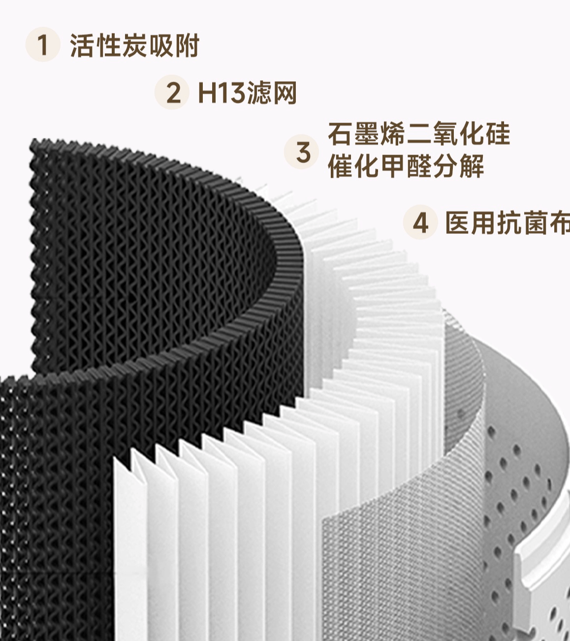 一体机中的空气净化部分主要依靠多层滤网系统。初效滤网负责拦截较大颗粒的灰尘、毛发等杂质;HEPA滤网能够高效捕捉微小的颗粒物,如 PM2.5、PM10 等,其过滤效率可达 99% 以上;活性炭滤网则专注于吸附甲醛、苯等有害气体以及异味,为室内空气进行全面的 “清洁”。