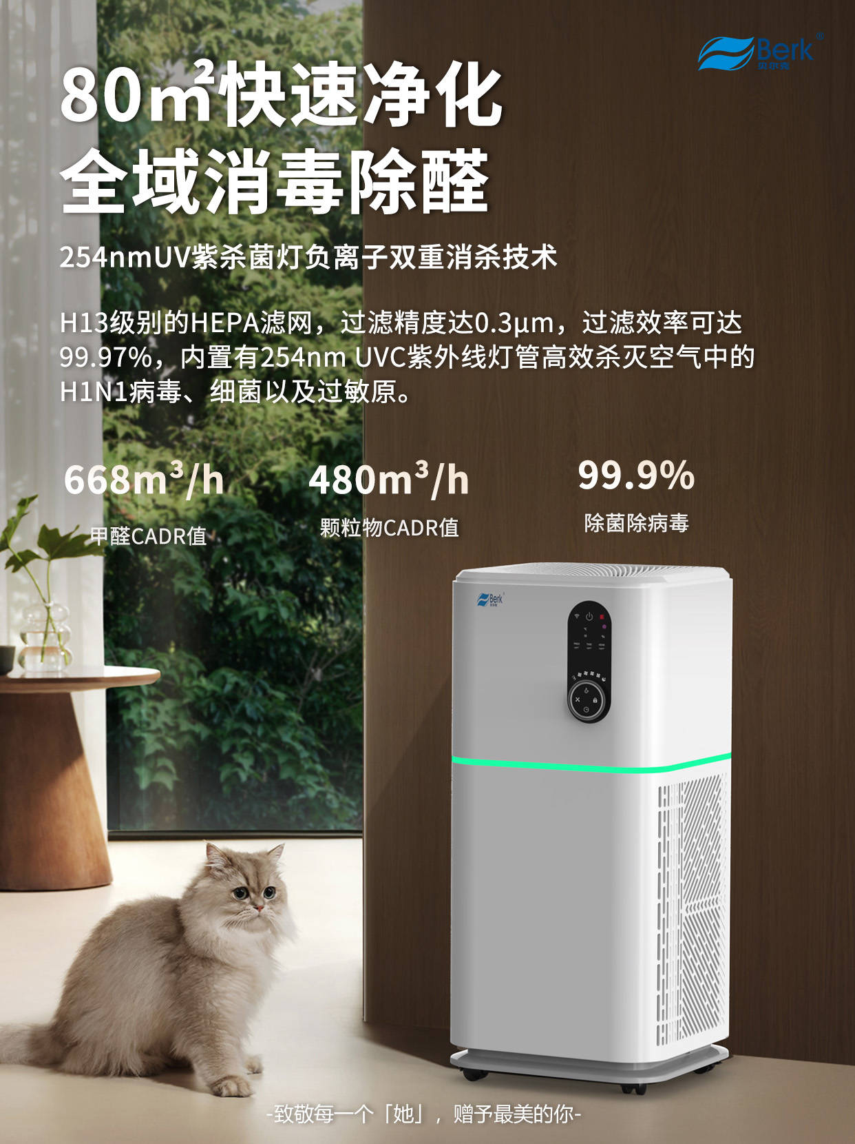 UV紫外线灯能够破坏细菌病毒的DNA结构,使其失去繁殖和生存的能力;而负离子发生器则可以释放大量的负离子,与空气中的细菌病毒结合,使其沉降或分解,让空气更加洁净。