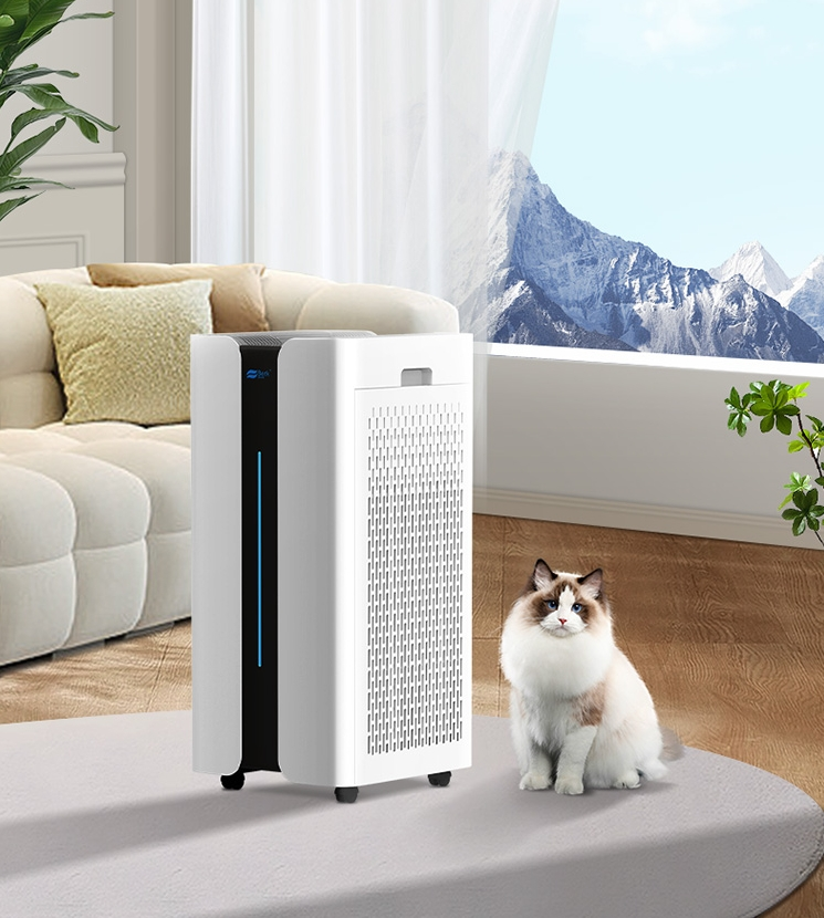 六重过滤系统:初效滤网拦截毛发→H13级HEPA滤网过滤PM0.3→活性炭吸附异味→UV紫外线杀菌→负离子清新→光触媒分解,实现全链路净化。