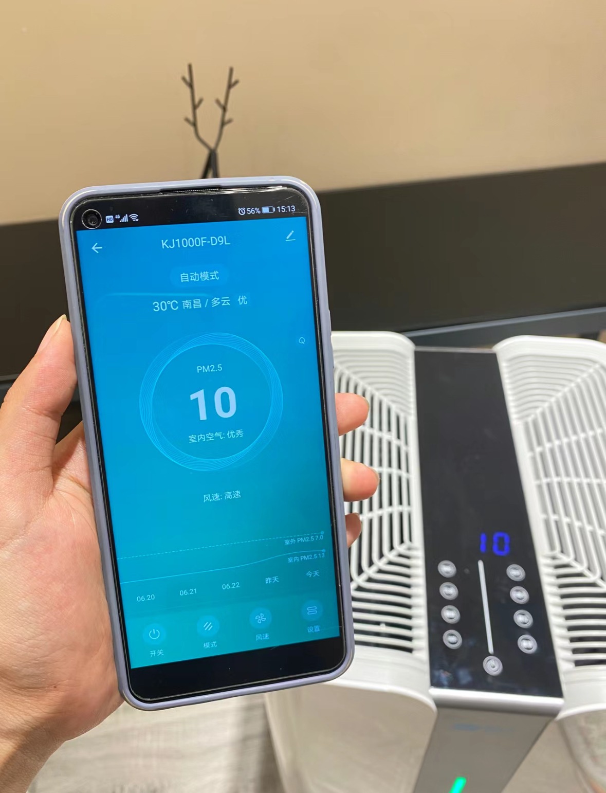 APP智控智联:现在智能家居理念下,能有APP智控就很好了,可以通过手机在没有到家的时候提前开启空气净化器净化,可以实时查看家里空气状态是否安全。