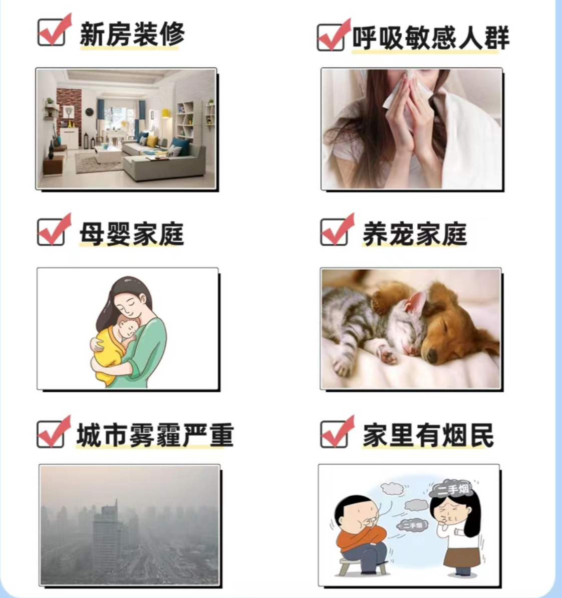 ②对于有呼吸道敏感或过敏体质的人群,空气净化器可以提供一个更加洁净的呼吸环境。