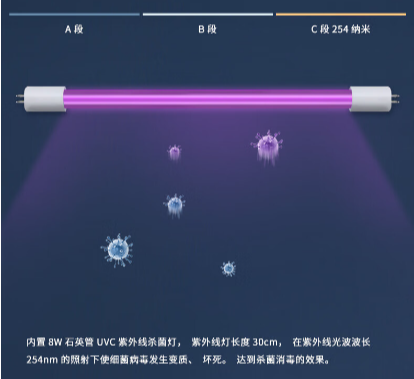 UVB紫外线灯管照射:通过不同波长的照射杀灭病毒,但UV灯管杀菌需要长时间照射,而净化器的气流是快速通过,因此,能杀灭的病毒有限。
