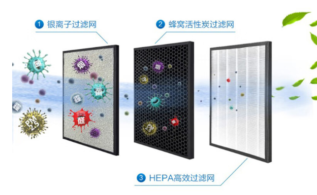 HEPA,中文意思为高效空气过滤器,达到HEPA标准的过滤网,对于0.3微米的有效率达到99.998%,HEPA网的特点是空气可以通过,但细小的微粒却无法通过。