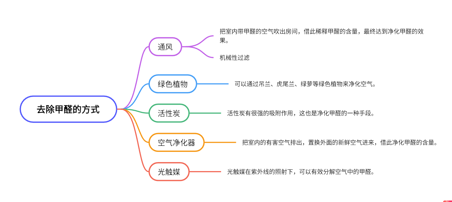 目前,去除甲醛的方式大概有下面的方法,其中通风、绿植、活性炭包是常用的方式,但另外还有光触媒等新型方法,但需要专业的设备才行。