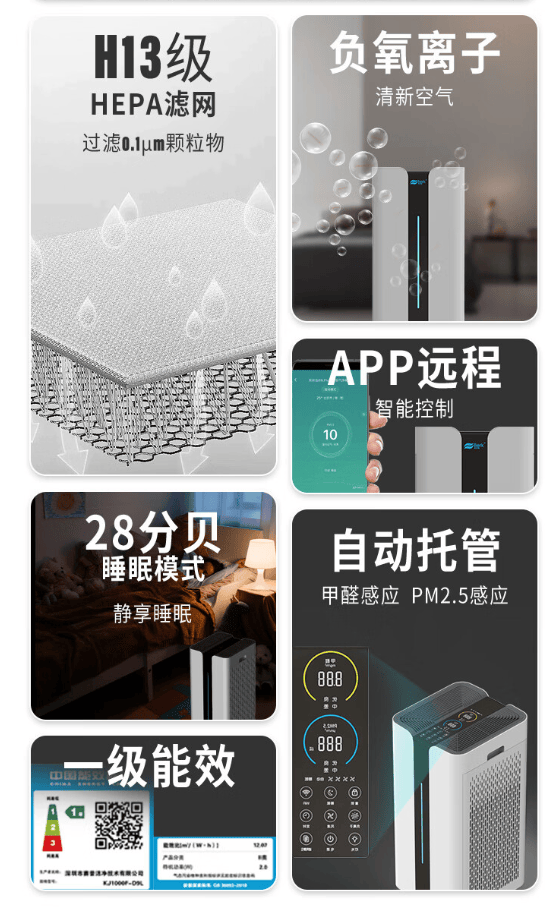 除此外,在除菌上,配备H13级HEPA滤网,滤网均匀复合银离子,强力破坏空气中经过滤网的病毒细胞,彻底消灭病菌。纳米Ag+灭菌技术实测一小时病菌清除率达到99.99%。同时,负离子发生器能中和空气中的有害物质,进一步净化空气。