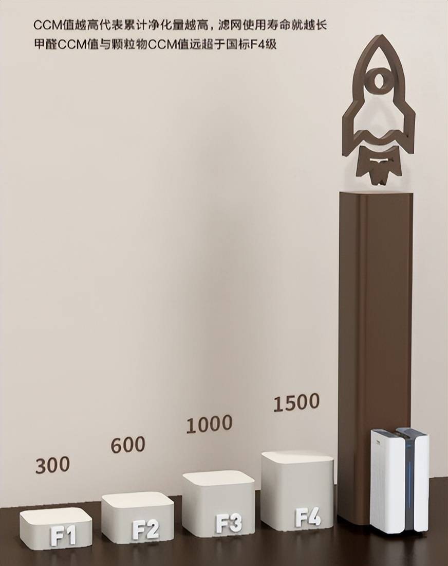 以甲醛 CCM 值为例,F4 等级(≥1500mg)的滤网比低等级的滤网能处理更多的甲醛,可减少滤网更换频率,降低使用成本。
