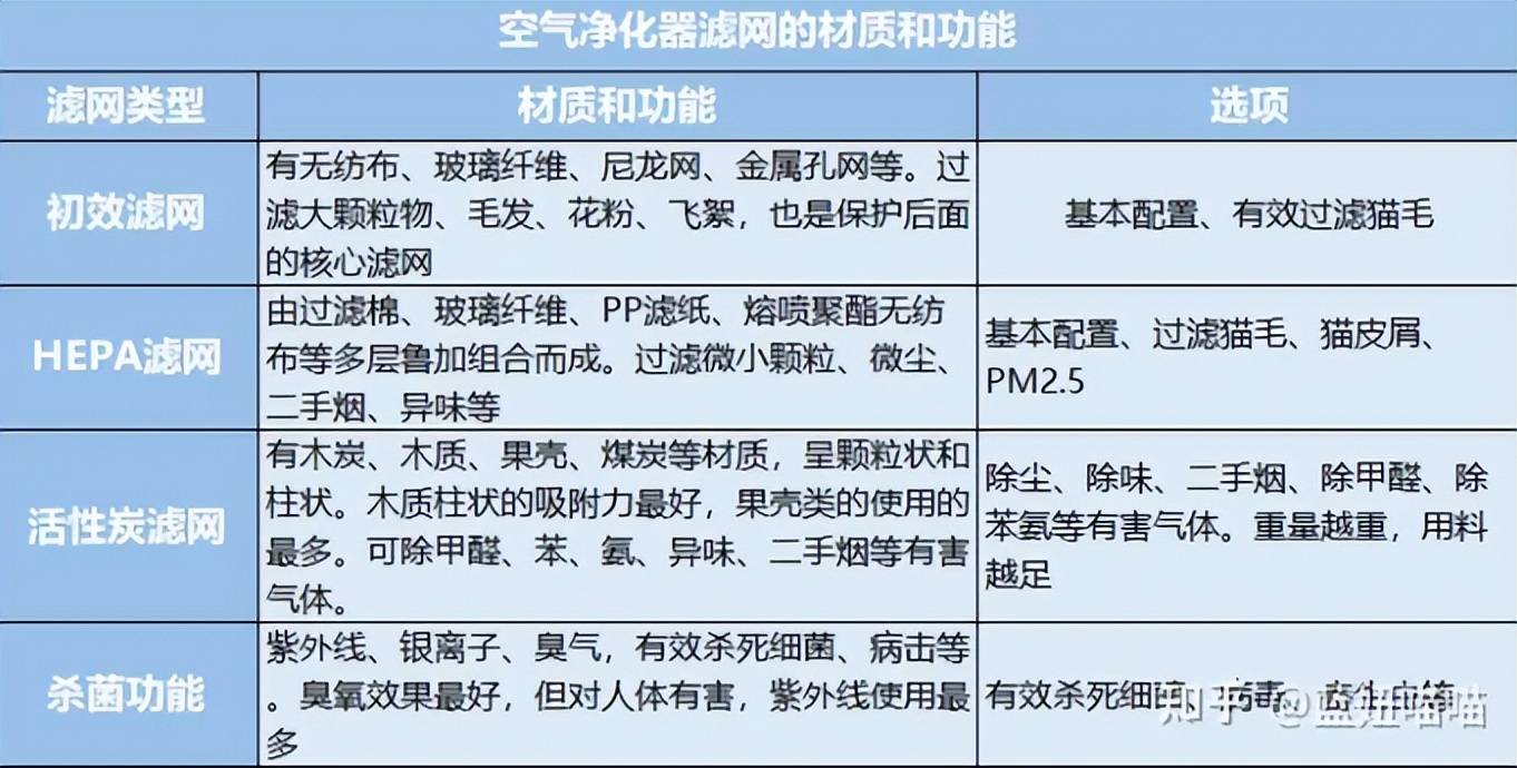 目前滤网的类型有HEPA、活性炭、光触媒、冷触媒技术、负离子银离子技术等这几种主流的滤网。