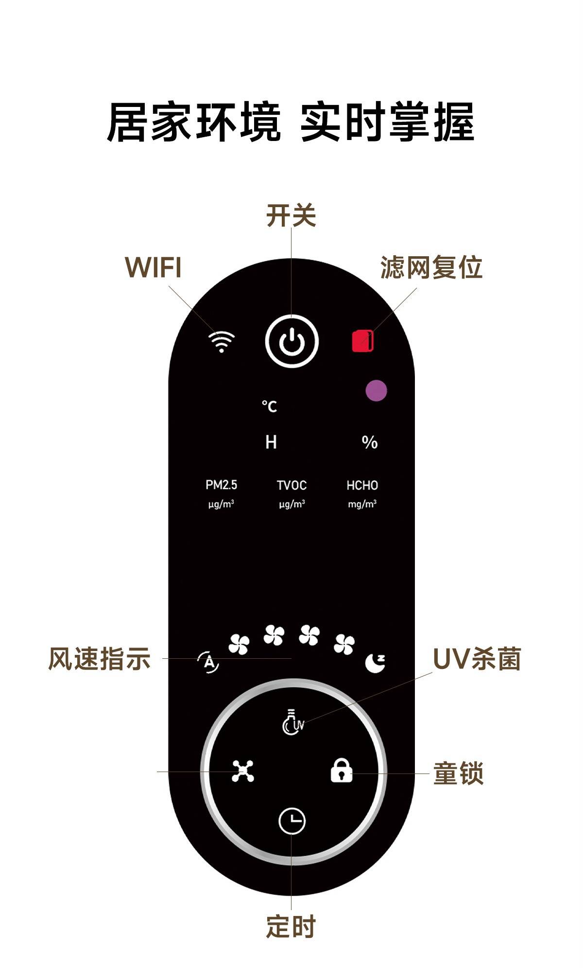 它还配有TVOC传感器和甲醛(可检测甲醛)、PM2.5传感器,可以有效的检测到甲醛等污染物,对于甲醛的分解只需要0.1秒,防止了二次污染。这款是我看过为数不多的标注出有甲醛净化器的产品,所以还是比较推荐的,不像很多产品说处甲醛,却连甲醛都检测不到。