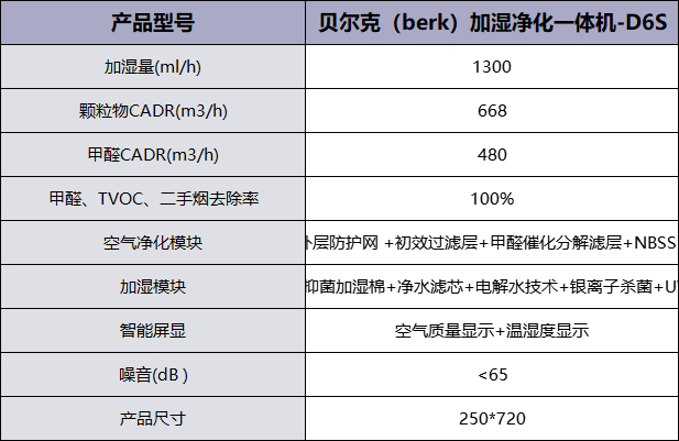 除此外,这款是加湿器的同时也是一款家用除醛除菌除霾的家用空气净化器。其中D6S的甲醛CADR值高达480m³/h,颗粒物CADR值668m³/h,可以迅速去除甲醛并净化空气,最大可适用于80㎡的空间,一台机器便能满足家庭中各个房间的净化需求。