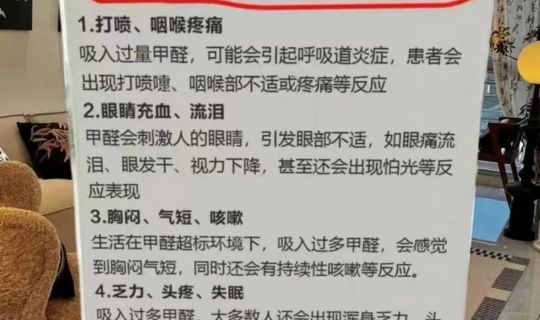 入住新家后,是否有感觉不舒服的,如果你觉得不舒服的很有可能是有以下10个征兆。眼部刺激:甲醛会刺激眼睛,导致眼睛发红、刺痛、流泪等症状。呼吸道不适:甲醛可以刺激呼…